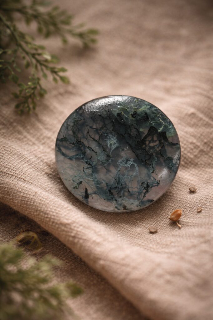 “Moss agate — a stone of rooted beginnings and quiet growth.”